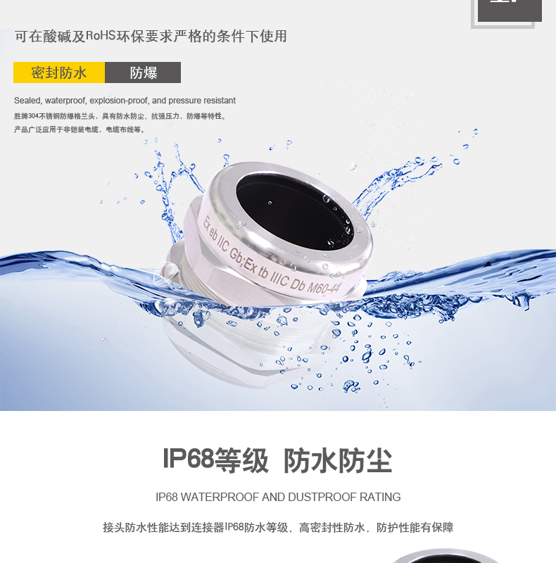 采用304不锈钢材质,防水性强,抗强压力,密封性强。
